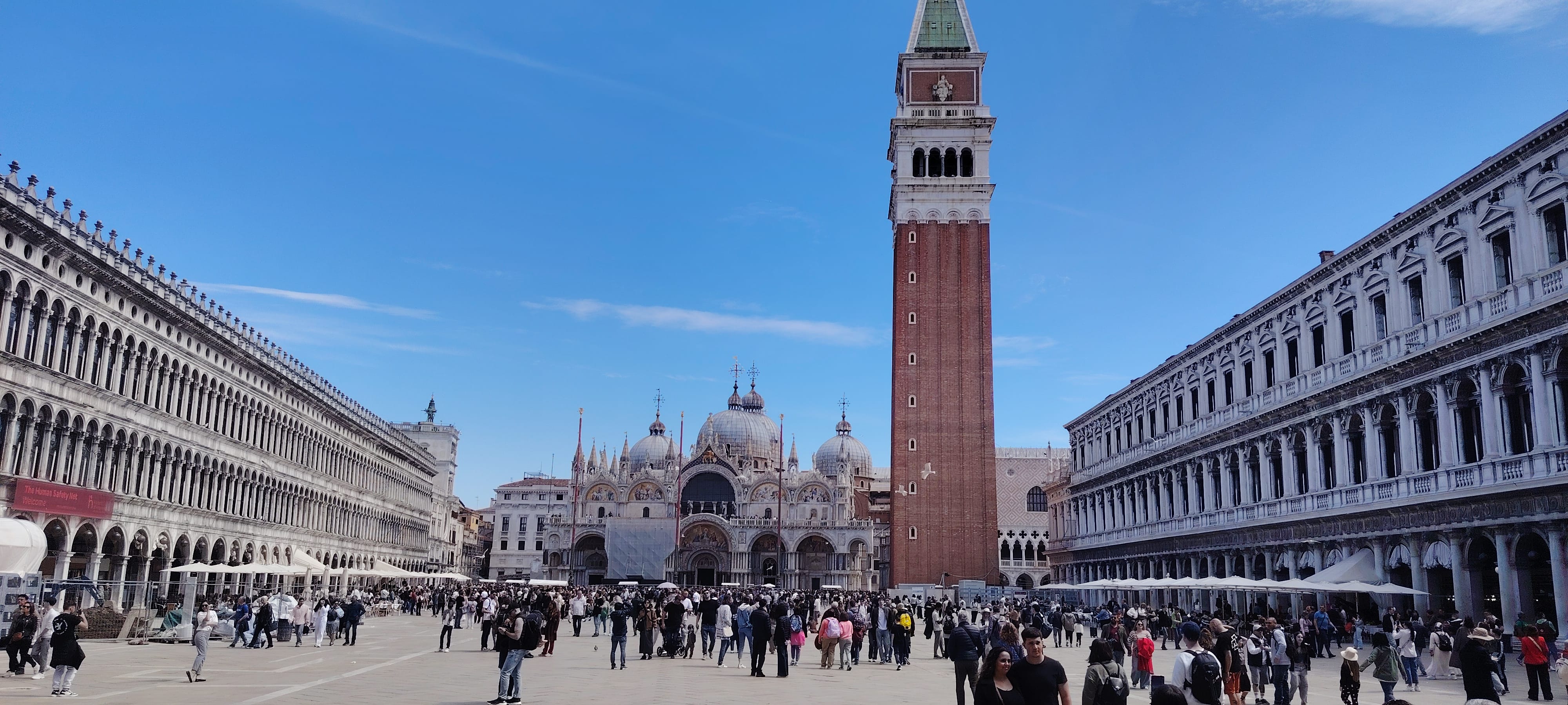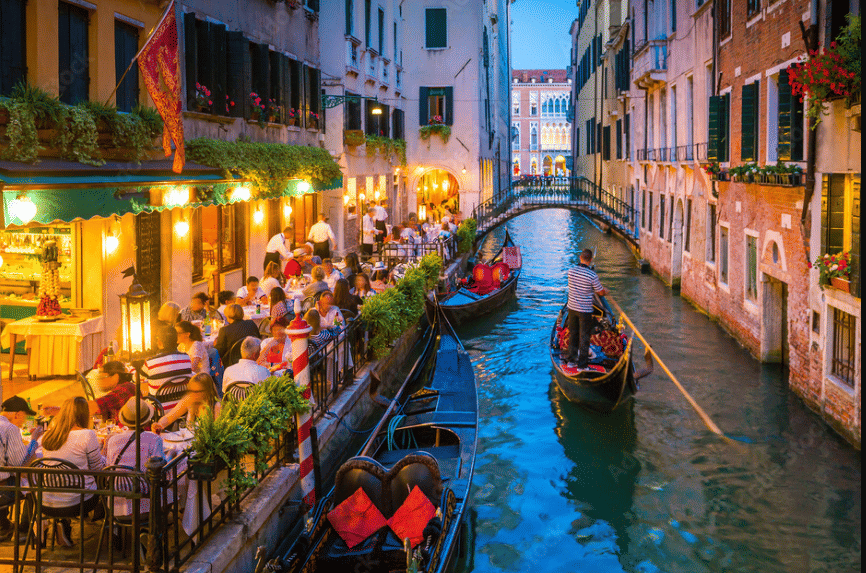 Our tour culminates in the iconic Piazza San Marco, where you’ll take in one of the most breathtaking views in Europe. We’ll admire the stunning façade of St. Mark’s Basilica (exterior), the towering Campanile, the historic Clock Tower, and the majestic Doge’s Palace (external explanation only), once the residence of Venice’s powerful rulers. Finally, we’ll view the famous Bridge of Sighs, learning the poignant story behind its name.