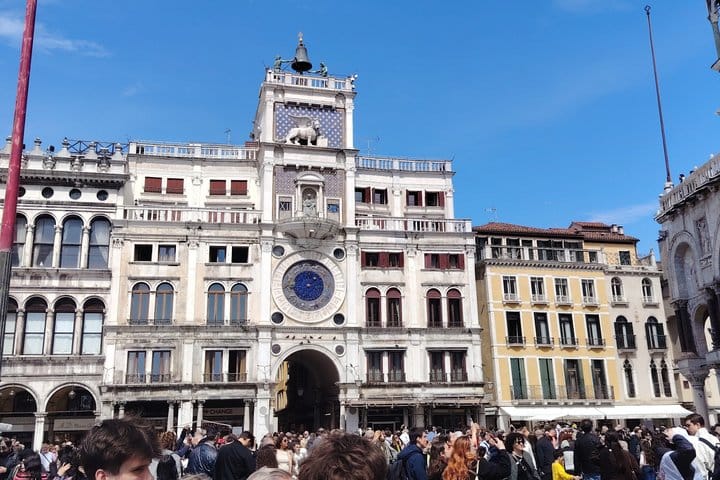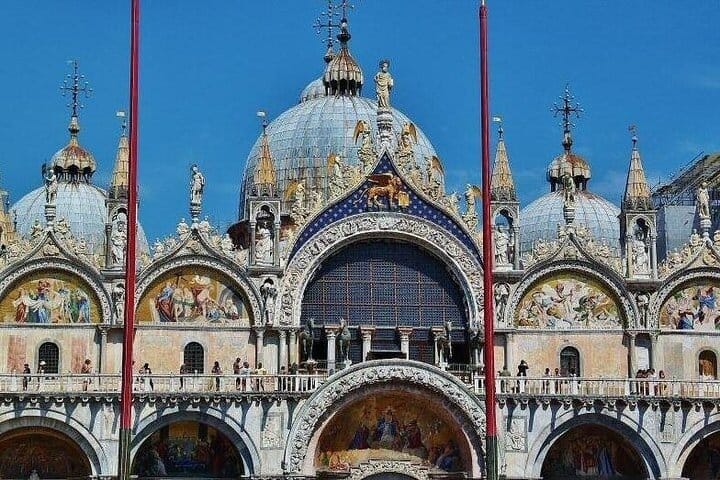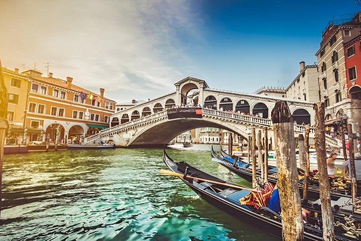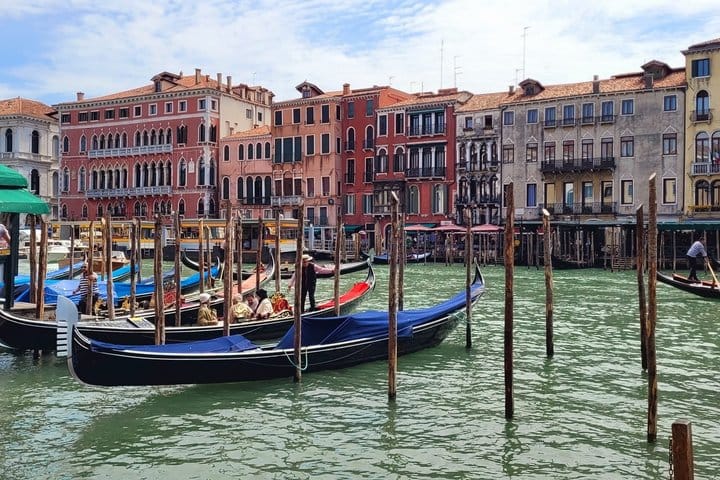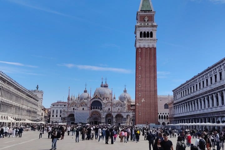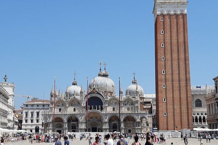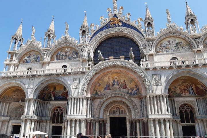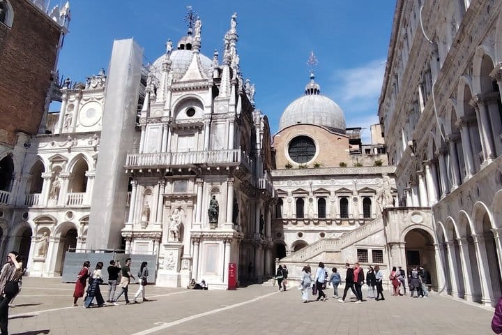 Discover the charm of Venice on a 7-hour tour, exploring its rich history, art, and culture. Start in the historic Jewish Ghetto, the oldest of its kind in Europe, and uncover its hidden synagogues. Walk through Rialto’s marketplace, cross the iconic bridge, and visit the bustling market. Enjoy panoramic views from the Fondaco dei Tedeschi rooftop. Experience a traditional gondola ride through Venice’s serene canals, then savor Venetian cuisine at a local restaurant. After lunch, marvel at St. Mark’s Basilica and its golden mosaics. End your journey with a tour of the Doge’s Palace, exploring its grand rooms and crossing the Bridge of Sighs. This immersive tour offers exclusive insights into Venice’s past and present.