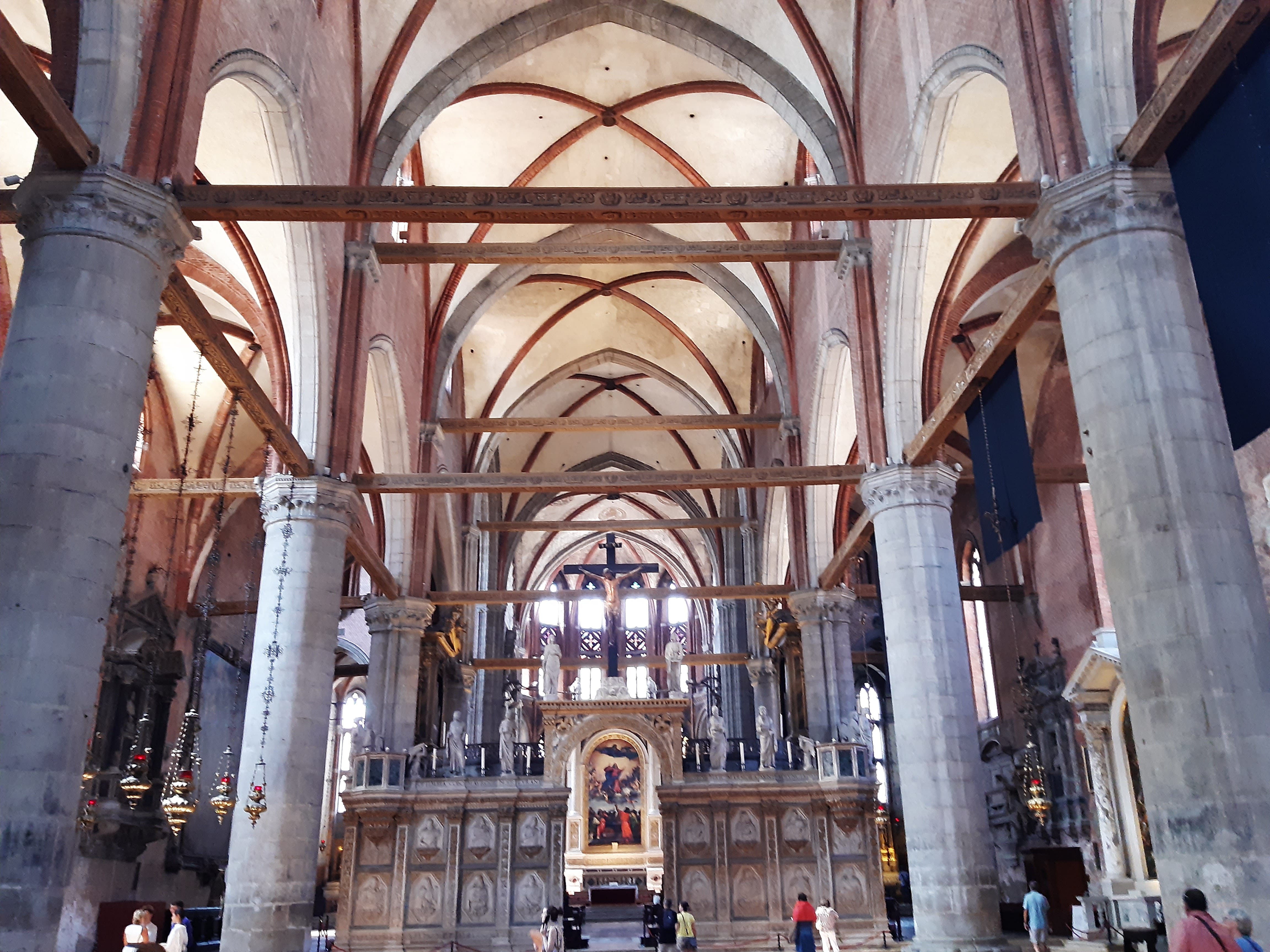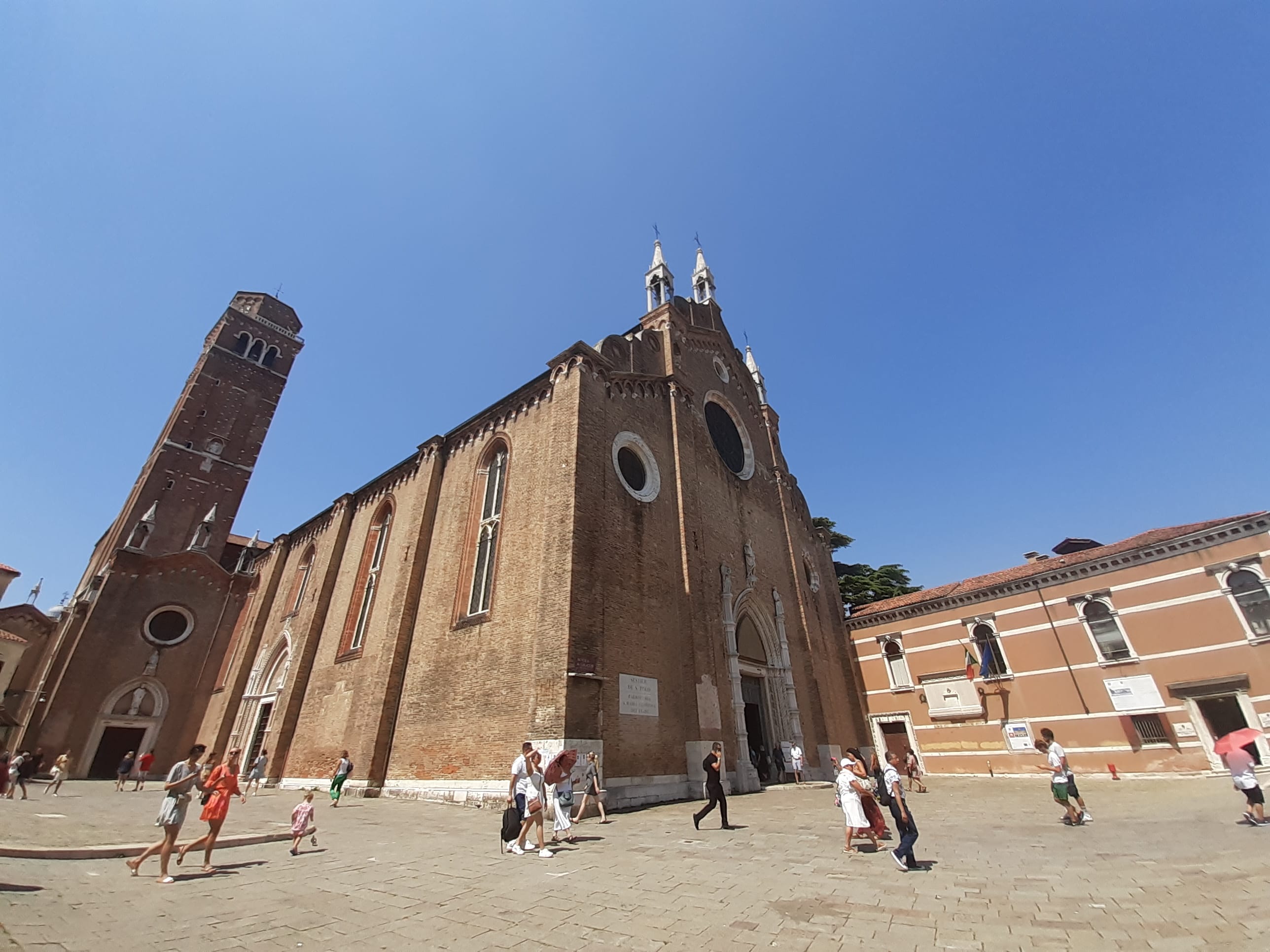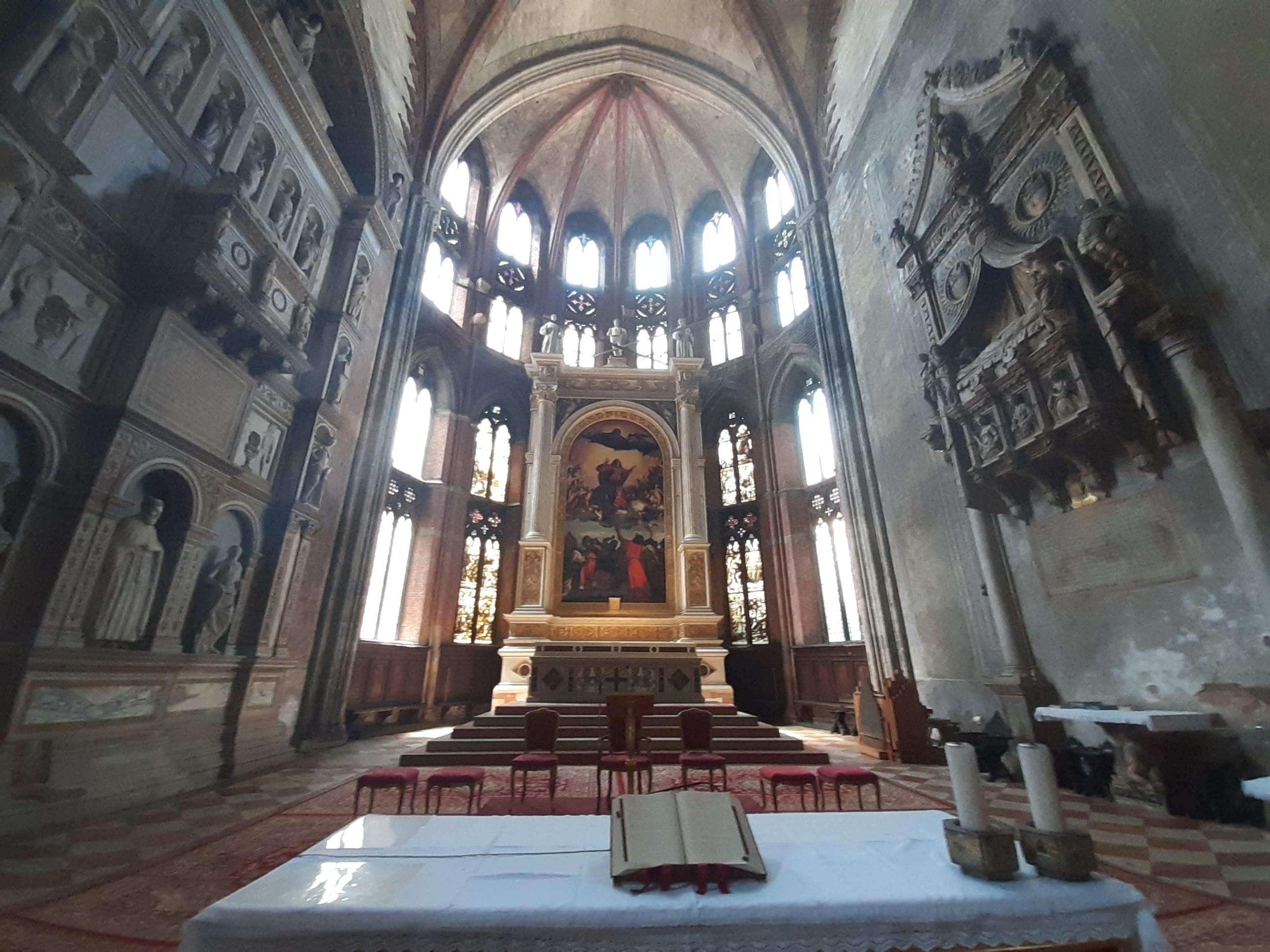 Our private experience begins at Piazzale Roma, the historic gateway to Venice, where the modern world fades into the timeless city. We begin our stroll through the tranquil backstreets of San Polo, away from the crowds, and arrive at the magnificent Basilica di Santa Maria Gloriosa dei Frari, a Gothic masterpiece founded by the Franciscan friars in the 13th century. Inside, we marvel at Titian’s monumental Assumption of the Virgin, Veronese’s Feast in the House of Levi, Bellini’s Pesaro Triptych, and Donatello’s St. John the Baptist. The Frari is not only an artistic treasure trove but also a resting place for greats like Titian and Antonio Canova, where art, faith, and history converge.